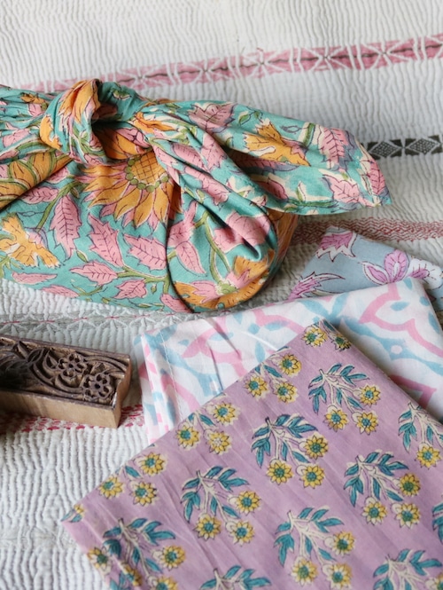 また、ブロックプリントは調色からすべて手作業、人の感覚にて作られています為