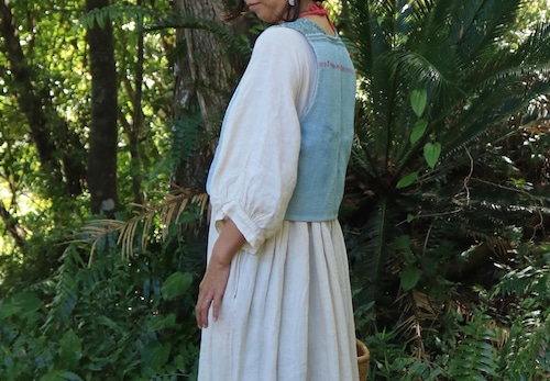 濃い藍染にはせず、ヴィンテージ感の感じる浅葱色に染め上げました。