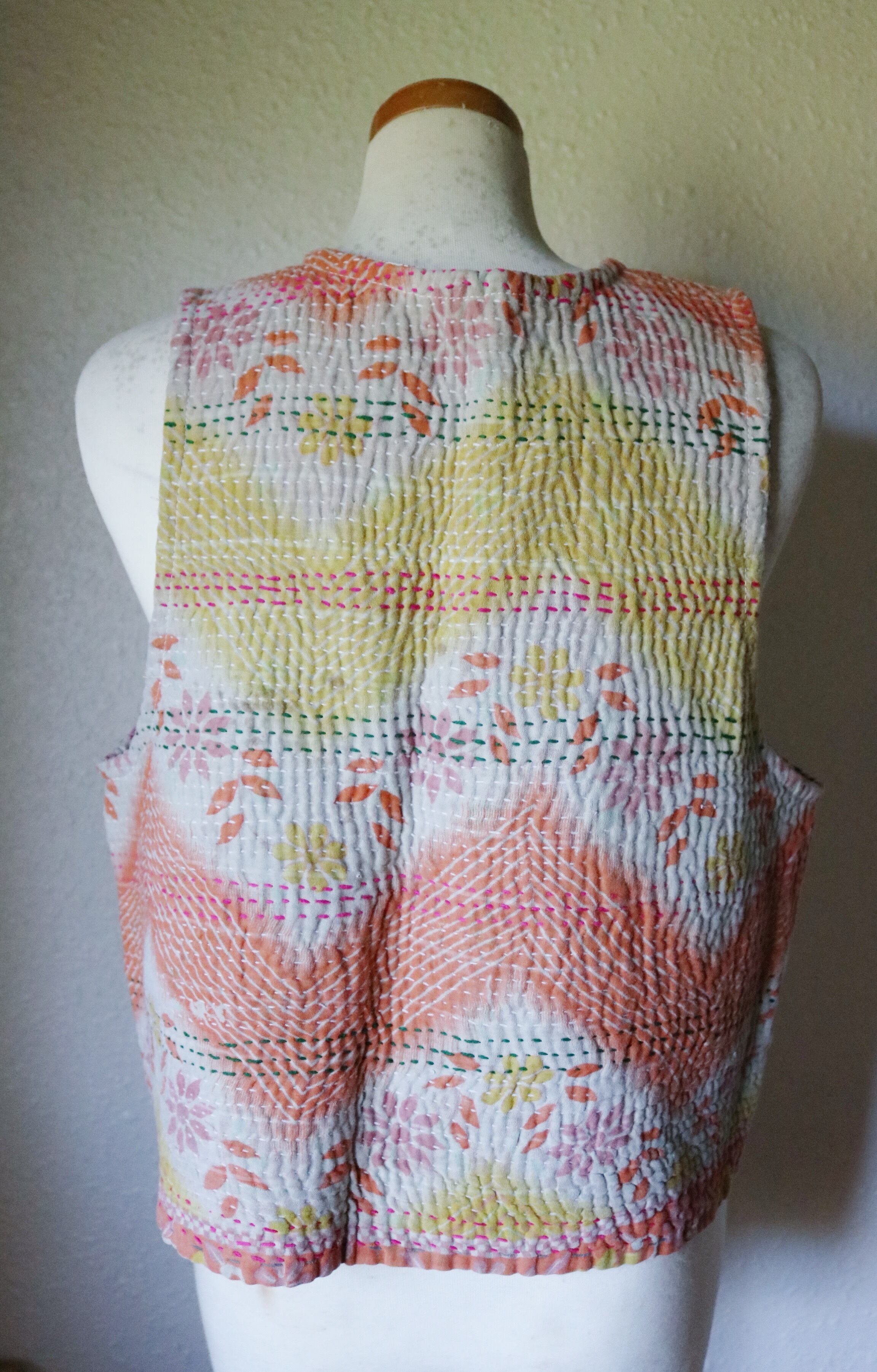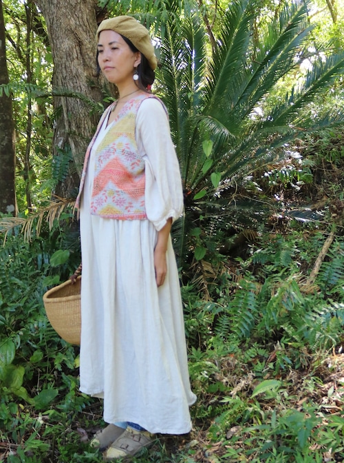 カンタキルトから仕立てたリバーシブルのベストです。