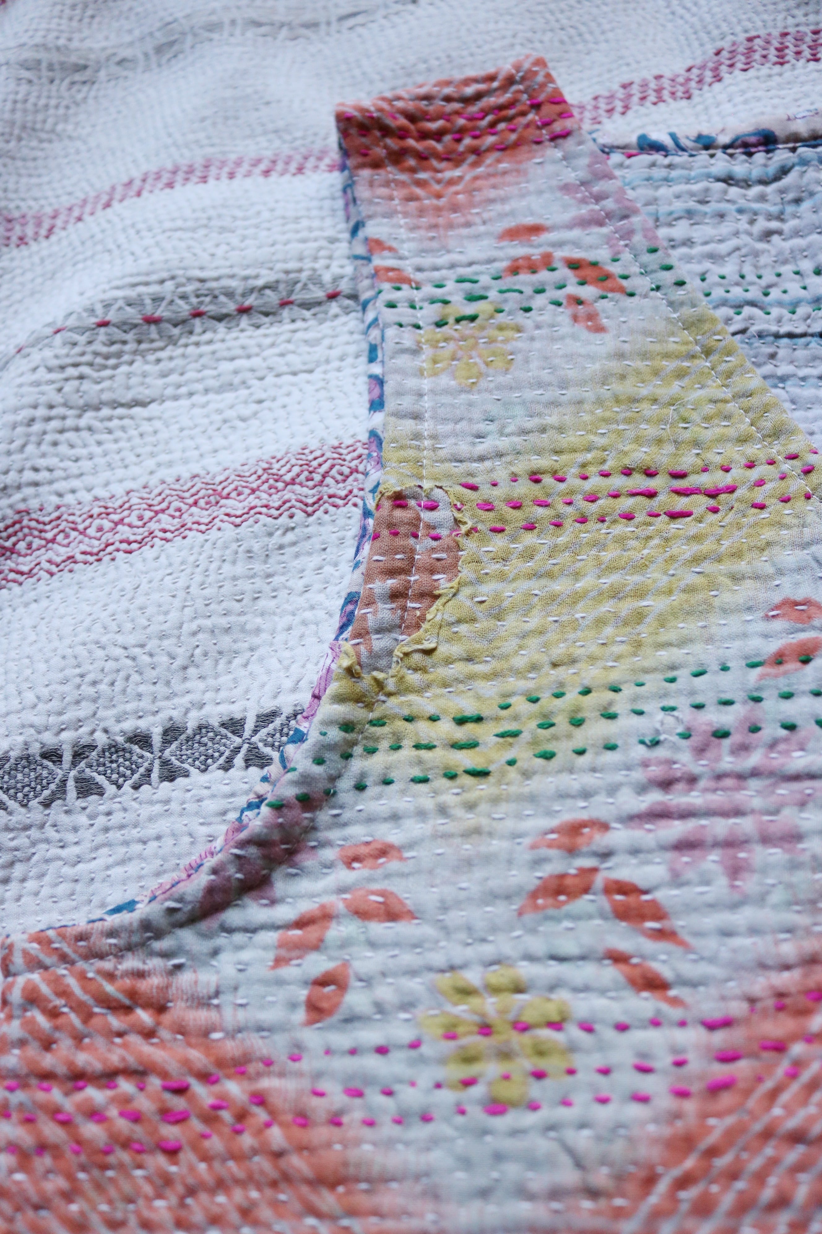 カンタキルトに施された細かな刺し子は誰かへの大切な思いが込められている