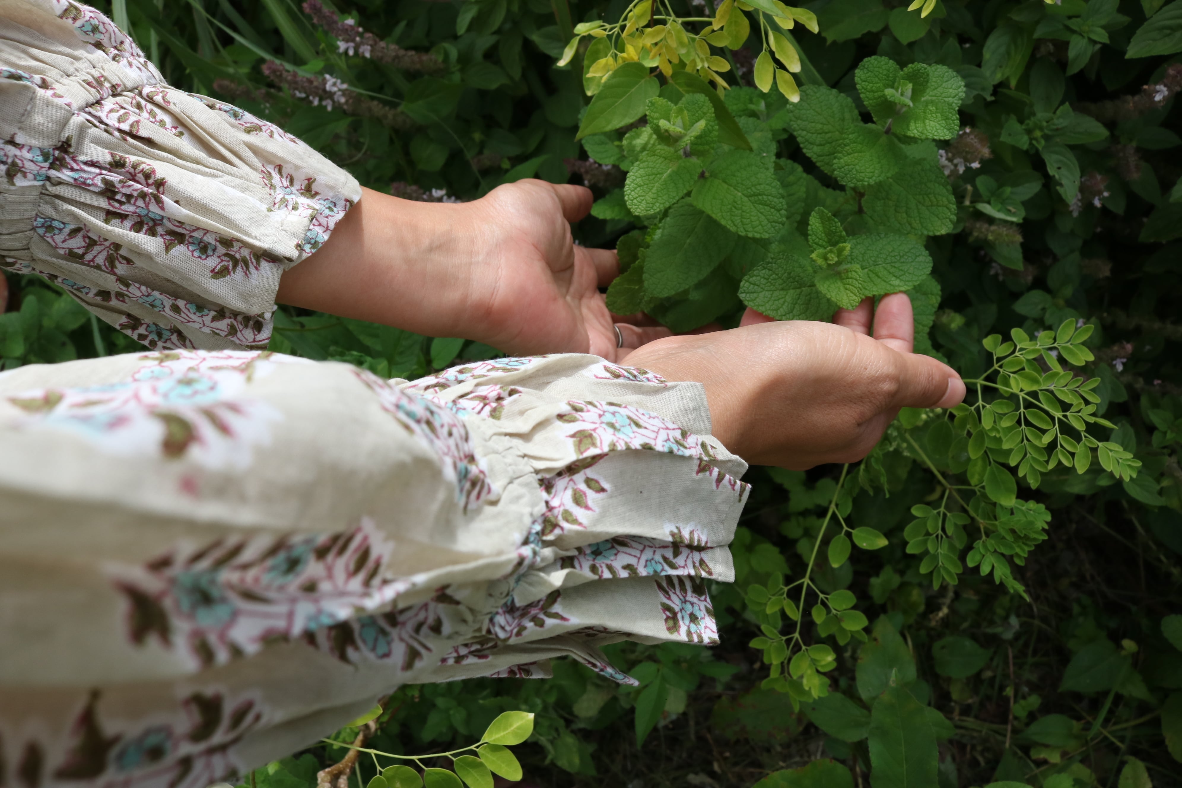 布地は一版一版手押しで仕上げたハンドブロックプリント